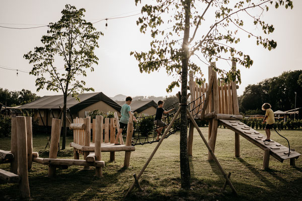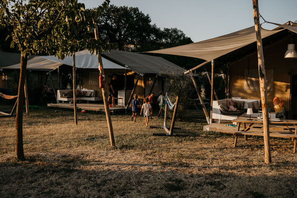 De 14 Safaritenten hebben elk een eigen karakter en indeling. Zo hebben de Safaritent XL (6 persoons) en Safaritent DeLuxe (4 persoons) eigen sanitair en vaatwasser. De Safaritent Cosy en de Safaritent Nice (4 persoons) zijn heerlijk knus en gezellig ingericht. Buiten koken, loungen op de veranda terwijl de kinderen spelen in de grote speeltuin en zandbak tegenover de Safaritent. Door de bedden met goede matrassen kom je echt tot rust, ze zijn zelfs opgemaakt bij aankomst zodat je direct van je vakantie kunt genieten!